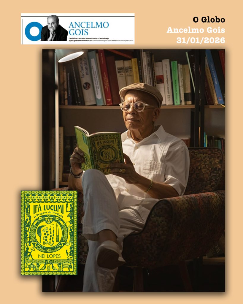 Também na Coluna do Anselmo Gois, no dia 31/01. O samba-enredo da escola [Lonã Ifá Lukumi], é inspirado no livro de Nei Lopes: Ifá Lucumi: o resgate da tradição — uma vertente religiosa africana que vem sendo redescoberta no Brasil e em Cuba, e que atraiu a lupa estudiosa do nosso mestre.