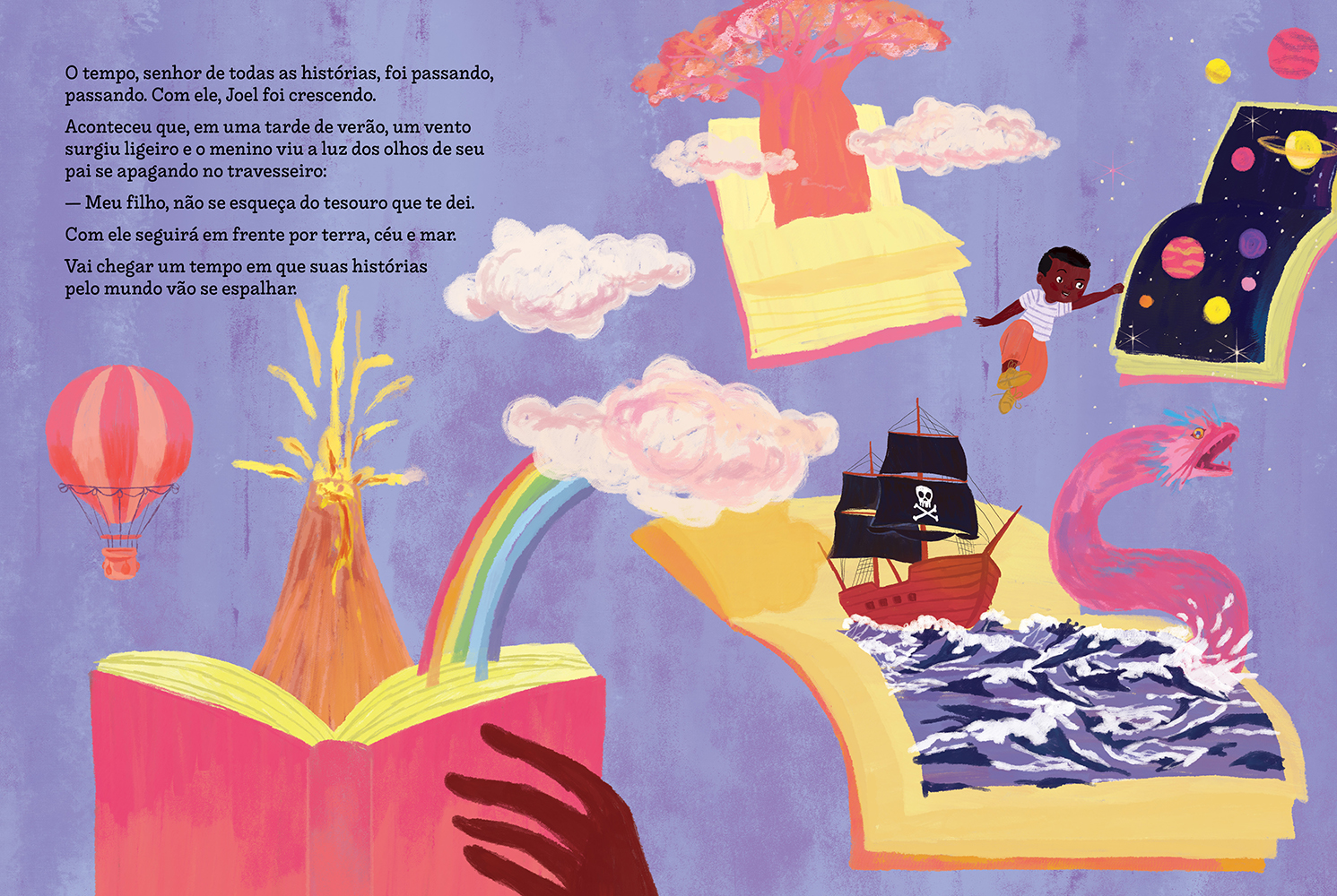 RODRIGO ANDRADE é designer gráfico e autor de literatura infantil. Lançou, em 2023, seu primeiro livro como único autor, O que a mamãe não sabe…, pela editora Caixote. Rodrigo está sempre deixando marcas nos livros que assina. Suas ilustrações são textos que convidam o leitor a ler as muitas camadas que a história está contando, e, com bastante criatividade, suscitam reflexões por meio de sua convocação a parar, apreciar e investigar. Para a Pallas, ilustrou também os livros Joel, o contador de histórias e Pequeno manual de meditação para crianças que querem se conectar com o mundo.